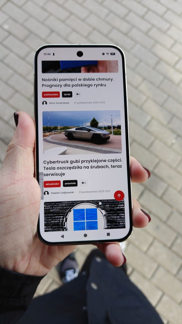 A zaczynamy od specyfikacji, na którą tym razem składają się 6,3-calowy panel OLED LTPO o odświeżaniu 120 Hz, rozdzielczości 1280x2856 pikseli i jasności szczytowej 3300 nitów, układ Google Tensor G5 wspierany przez 16 GB pamięci RAM i nawet 1 TB pamięci na dane (w moim egzemplarzu recenzenckim 128 GB), możliwości fotograficzne zapewniane przez 42 MP kamerkę przednią oraz 50 MP obiektyw główny z OIS, 48 MP obiektyw ultraszerokokątny i 48 MP teleobiektyw z 5-krotnym zoomem optycznym czy akumulator o pojemności 4870 mAh z "szybkim" ładowaniem przewodowym 30W (PD3.0), ładowaniem bezprzewodowym 15W (Qi2) i przewodowym ładowaniem zwrotnym. A wszystko to pod kontrolą Androida 16 z gwarancją siedmiu lat aktualizacji systemu i bezpieczeństwa oraz rozbudowanymi opcjami AI, bo możliwości software'owe są przecież siłą napędową sprzedaży Pixeli. Cena? W tym roku startuje z poziomu 4899 PLN (po cenie wersji XL widzę, że mówimy o podwyżkach rzędu 300 PLN w stosunku do poprzednika), ale w przypadku modelu z 1TB pamięci na dane musimy już szykować 6999 PLN, więc rozstrzał jest ogromny.