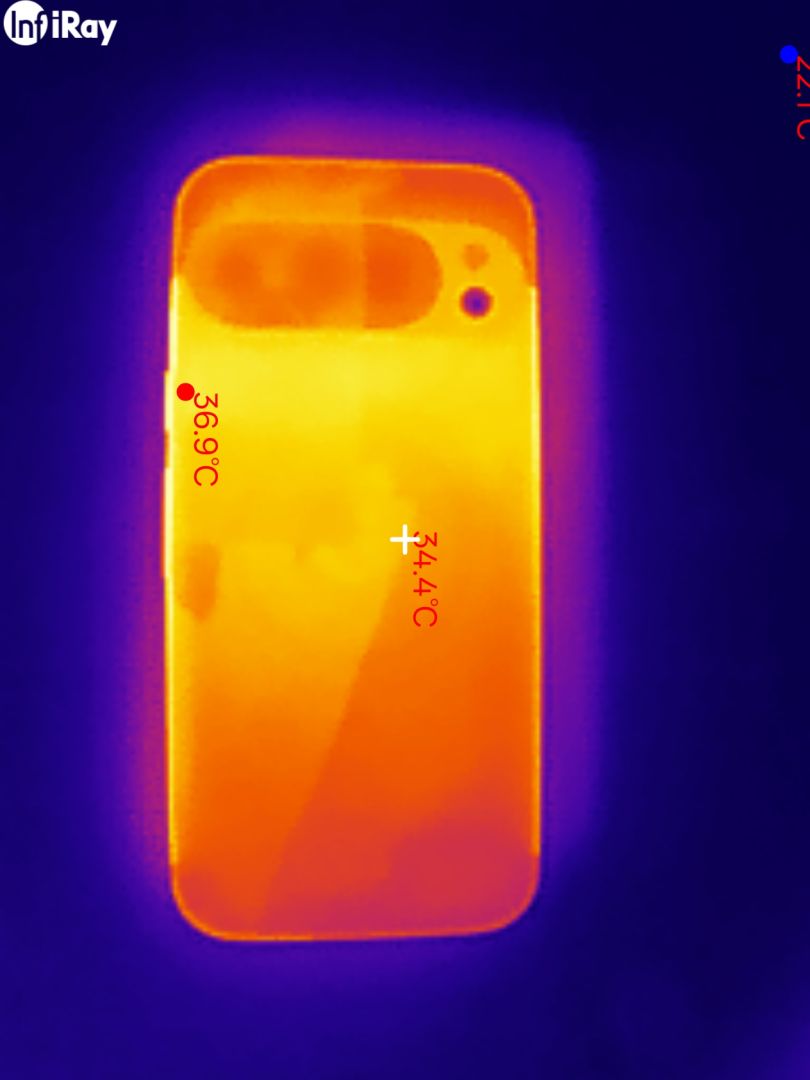 Nie najlepiej (delikatnie mówiąc) prezentują się też osiągi nowego procesora, bo jego wyraźną stratę do konkurencji widać nie tylko w benchmarkach, ale i w codziennym użytkowaniu. System nie działa tak płynnie jak u konkurencji i nie reaguje tak sprawnie na polecenia (ta specyficzna "ospałość" mocno przeszkadzała mi zarówno w ubiegłorocznej edycji, jak i testowanym niedawno Pixelu 9a), a do tego zdarza mu się dłużej pomyśleć czy na chwilę przyciąć. Do tego smartfon cierpi z powodu poważnego throttlingu termicznego - jego wydajność spada do 62% już po 3 minutach CPU Throttling Test, by dosłownie dwa razy na chwilę odbić do maxa i tyle. Co jednak ciekawe, smartfon pozostaje przy tym relatywnie chłodny, nagrzewa się znacznie mniej od poprzednika i wydaje się, że producent mógłby pozwolić mu na więcej. I tak, temperatury CPU i baterii po zakończeniu benchmarku AnTuTu wynoszą dosłownie 38 i 36,4 stopnie, a obudowa przy ok. 70% testu osiąga maksymalnie 37,8.