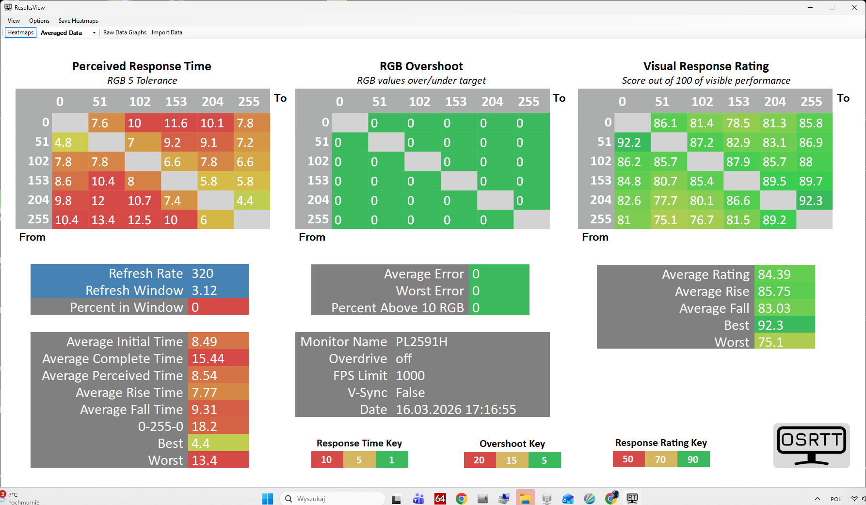 Delta E w trybie sRGB