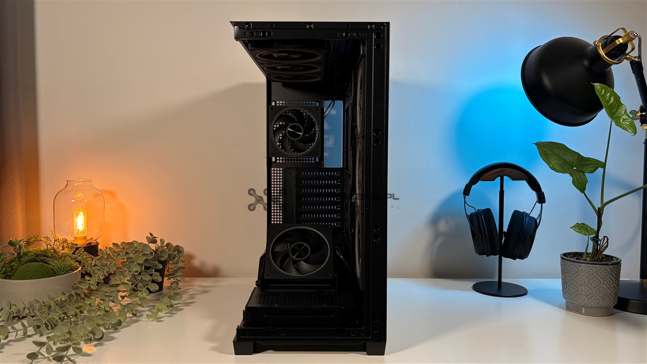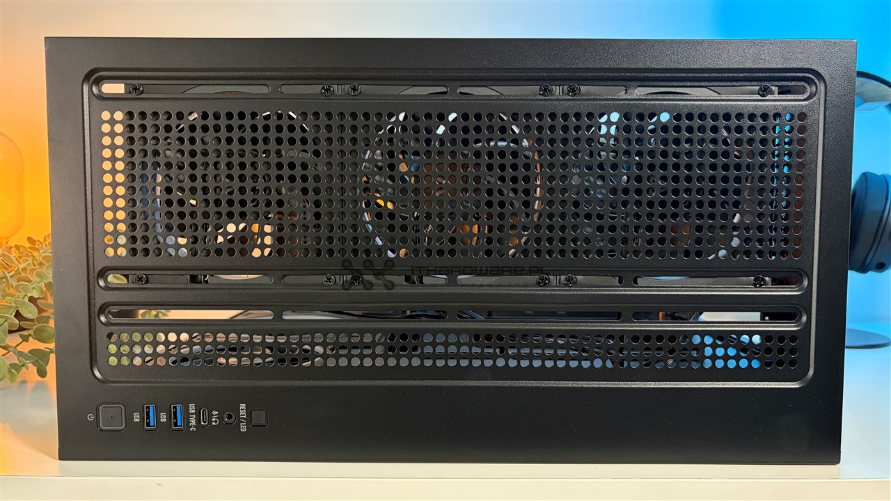 Ofiltrowanie również jest w pełni poprawne. Powiedziałbym nawet, że więcej niż tylko poprawne, bo filtr od spodu jest siateczkowy i można go łatwo wyjąć bez obracania obudowy. Nie mogę również zapomnieć o możliwości pionowego montażu karty graficznej oraz dwóch portach USB 3.0 typu A i jednym USB-C 3.2 Gen. 2.