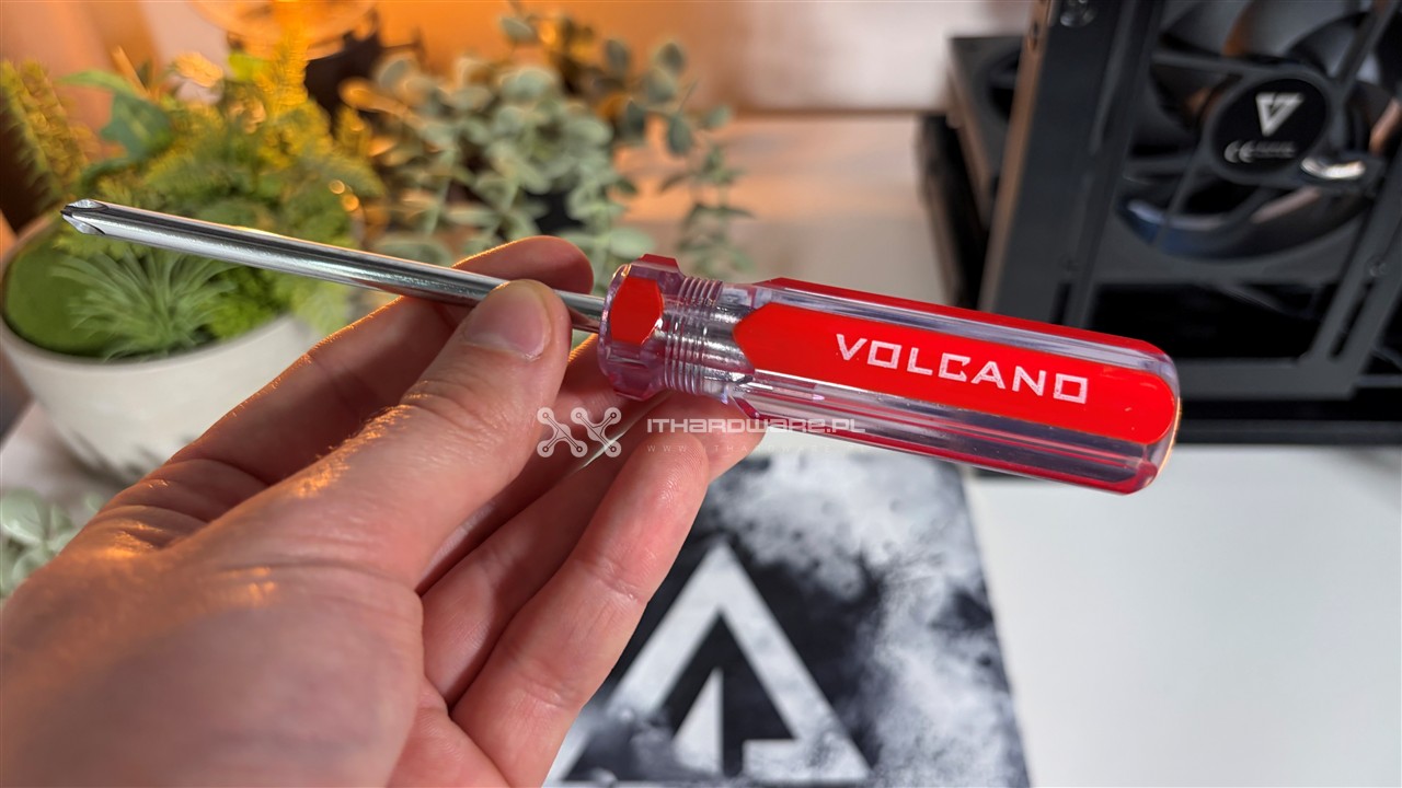 W kwestii frontowego panelu w zasadzie nie ma za bardzo o czym mówić. Ot duży kawałek hartowanego szkła pełniący nie tyle rolę praktyczną, co bardziej estetyczną. W jego prawym dolnym rogu producent postanowił umieścić napis „volcano”. Co istotne, panel przedni można łatwo zdemontować pozbywając się najpierw bocznego szkła, a następnie delikatnie ciągnąć za to frontowe.
