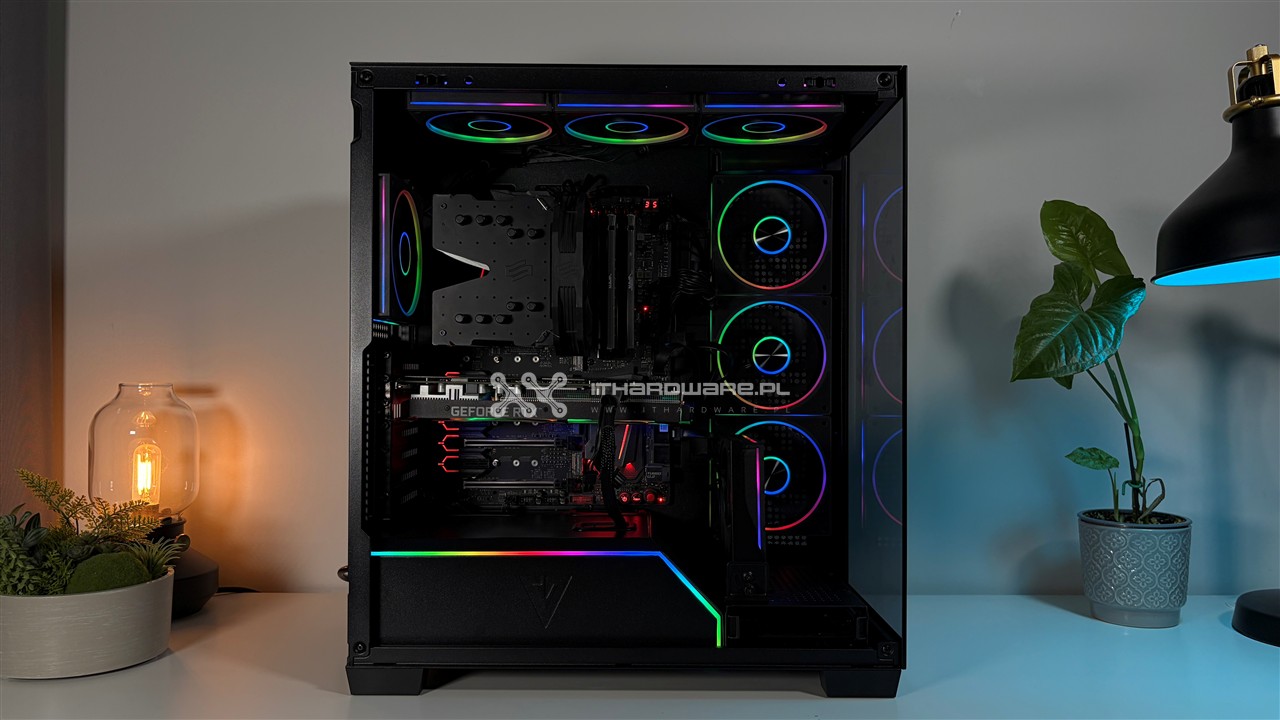 Producent zadbał także o przepiękny efekt wizualny po odpaleniu komputera i zgaszeniu świateł w pokoju. Ilość LED-ów jest duża i robi to wrażenie, ale jednocześnie efekt nie jest przytłaczający. Fajnie, że można sterować podświetleniem zarówno z poziomu obudowy, jak i płyty głównej. Plus oczywiście kontroler w zestawie.