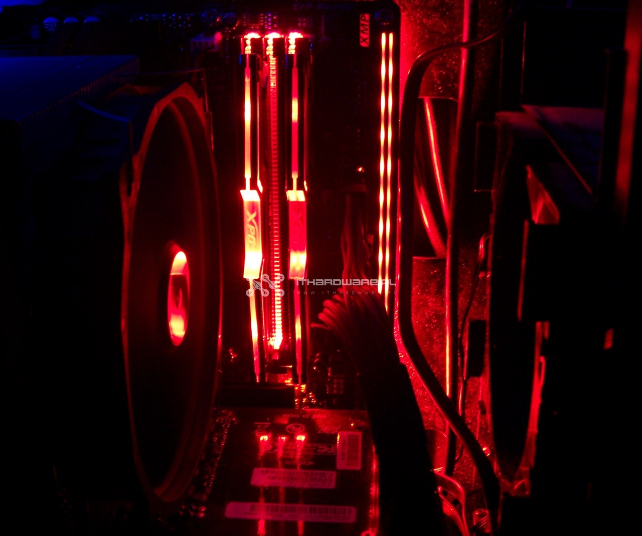 Za odprowadzanie nadmiaru ciepła generowanego przez kości odpowiada dwuczęściowy, aluminiowy radiator. Kolorystyka jest tutaj dość agresywna, wszak mamy sporą ilość czerwieni połączoną z klasyczną czernią, która zawsze dobrze się prezentuje. Radiatory nie są jakoś przesadnie wysokie, jednak wciąż mogą sprawić problemy w połączeniu z coolerami, które nie przewidują odpowiedniej przestrzeni dla pamięci RAM. Z obu stron mamy wytłoczone logo XPG, co oczywiście informuje nabywcę o przynależności do wspomnianej rodziny. Na szczycie modułów znajdują się diody LED koloru czerwonego, co mocno przypadło mi do gustu. Co ciekawe, pracują w dość niecodzienny sposób, ale o tym szerzej już za chwilę.