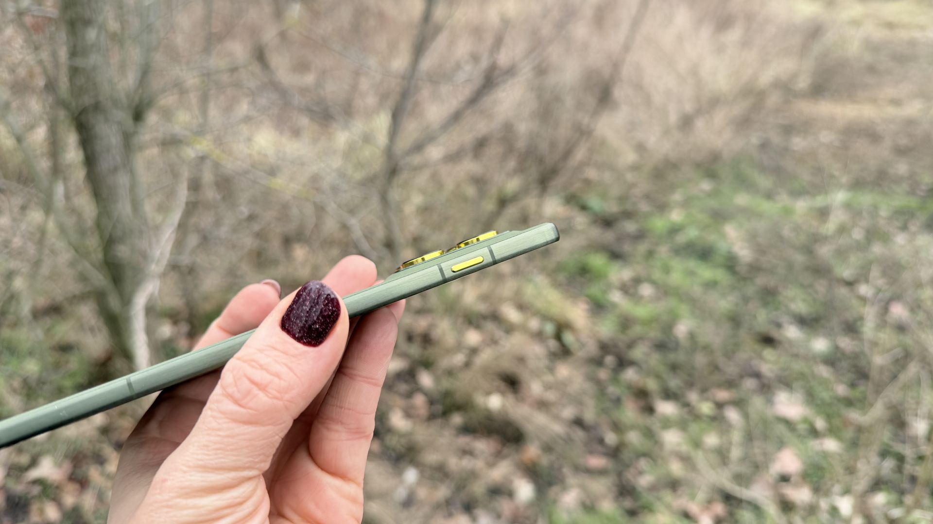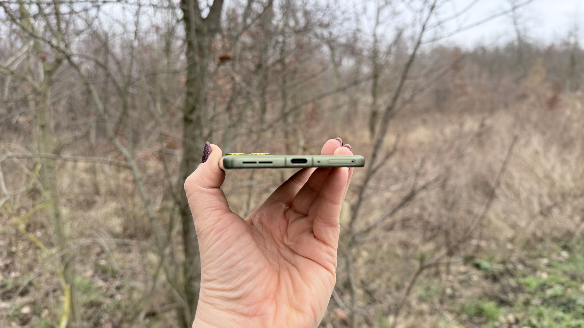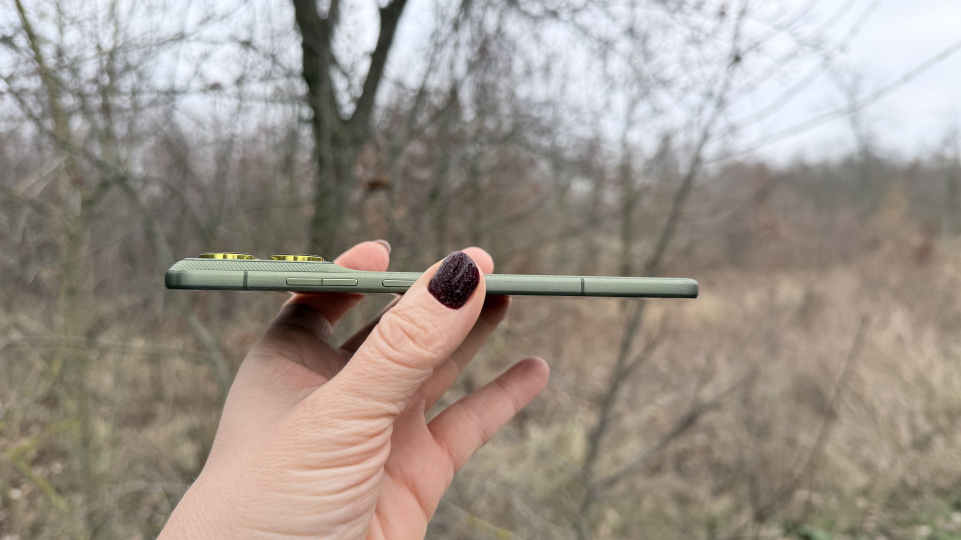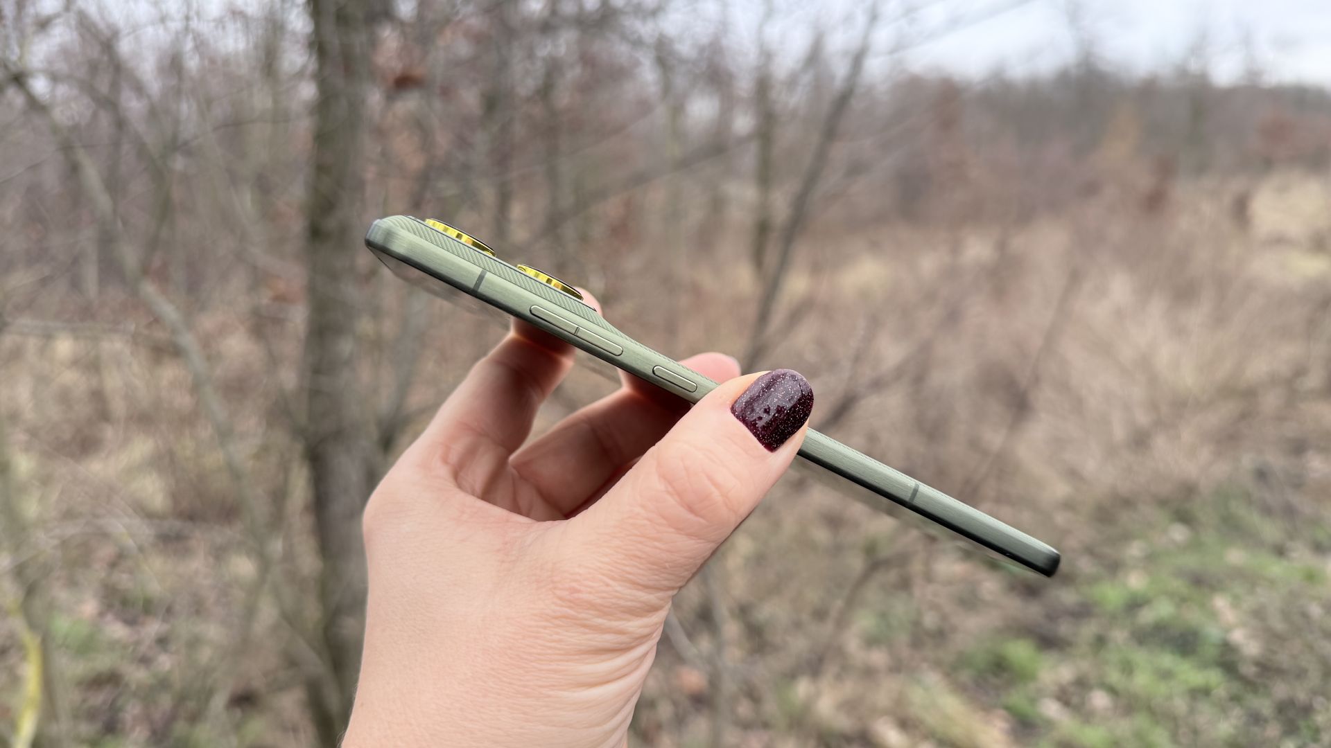 motorola zastosowała tu ramkę z aluminium lotniczego i ekran chroniony przez szkło Gorilla Glass 7i, a do tego urządzenie jest wodo- i pyłoszczelne, co potwierdza certyfikat IP69/IP68 i spełnia wymagania wojskowe standardu MIL-STD 810H1, więc nie jest wcale takie delikatne. I całe szczęście, bo edge 70 używany bez etui naprawdę cieszy oko - to całkiem kompaktowa konstrukcja o wadze zaledwie 159 gramów i wymiarach 159 × 74 × 5,99 mm. Ta smukłość telefonu naprawdę robi wrażenie i chociaż podobnie jak przy iPhonie Air mamy tu pewną wypukłość w obszarze wyspy aparatów, to tu wygląda to dużo lepiej. W ogóle cała konstrukcja sprawia wrażenie bardziej stylowej niż pomysł Apple i chociaż nie jestem fanką złotych akcentów w testowanej przeze mnie wersji Bronze Green, sam kolor jest nietypowy i bardzo ciekawy.