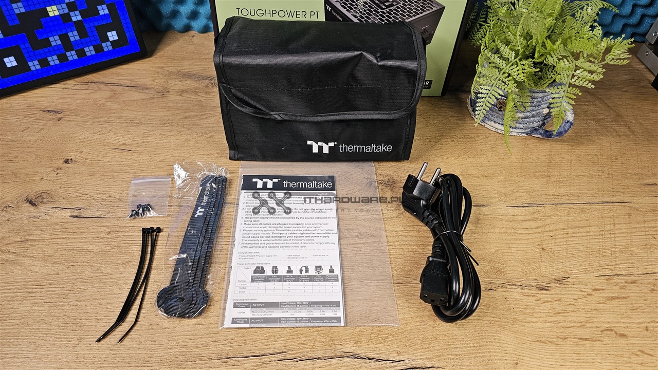 Wyposażenie jest dobre i w tej klasie urządzenia cieszy obecność praktycznej torby na przewody. Producent dorzuca również zarówno opaski rzepowe, jak i plastikowe, więc już na etapie montażu można zadbać o porządek w obudowie.