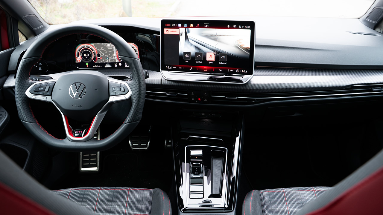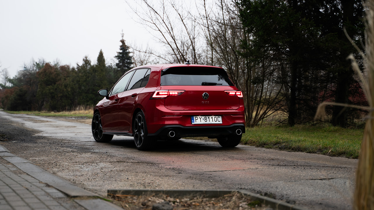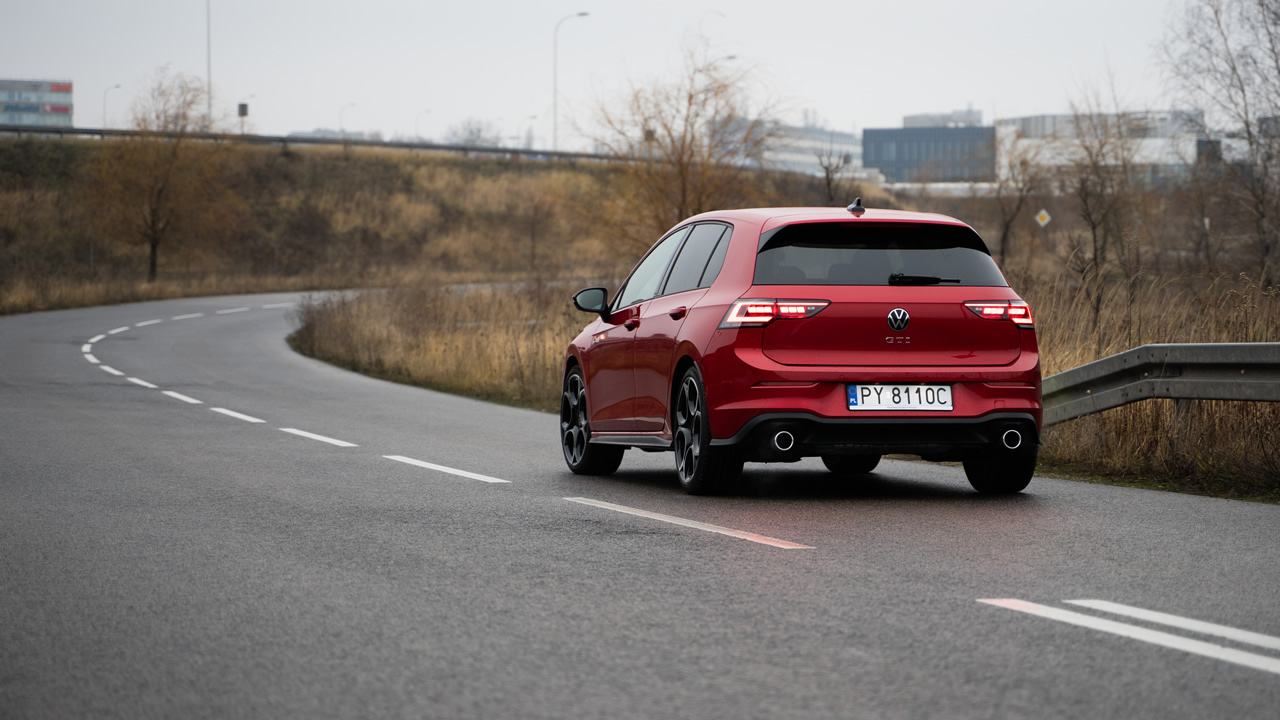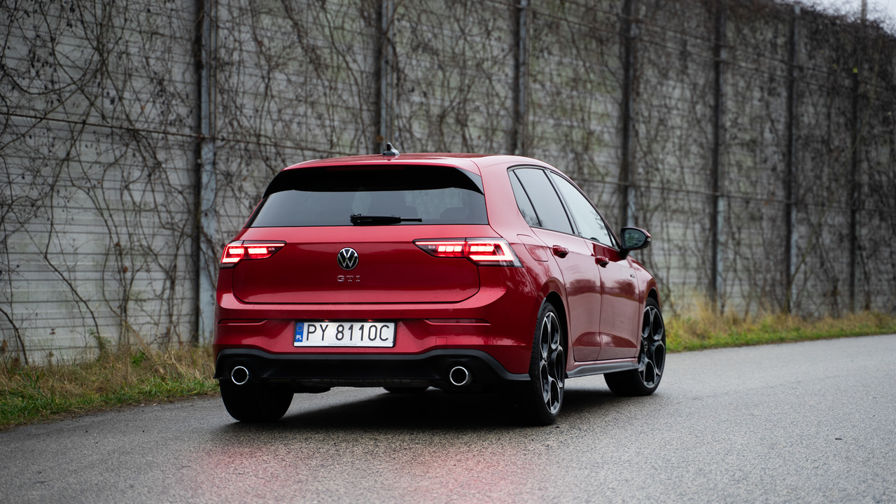 Początkowe wrażenie może być takie, że Volkswagen Golf GTI niespecjalnie różni się od Golfa R-Line (to pakiet stylistyczny). Ma podobne fotele, wykończenie wnętrza jest dobrej próby (miękkie materiały na drzwiach, wyścielone kieszenie, przyjemna kierownica), stylistyka jest niemal identyczna, auto całkiem komfortowo wybiera nierówności, dźwięk silnika i wydechu nie są przeszkadzające ani narzucające się. Osoba mniej obeznana nie zorientuje się, że układ napędowy oferuje 195 kW (265 KM) mocy, a zawieszenie przygotowane jest do naprawdę szybkiej jazdy. Nawet spalanie jest na bardzo sensownym poziomie, około 1 l/100 km więcej względem podstawowej jednostki 1.5 eTSI: w mieście da się mieć ~8 l/100 km, na autostradzie zakres 7-8,5 l/100 km zależnie od tempa jazdy.