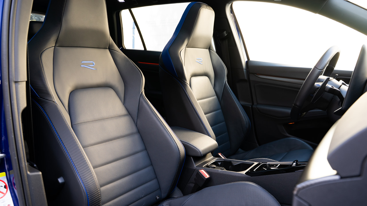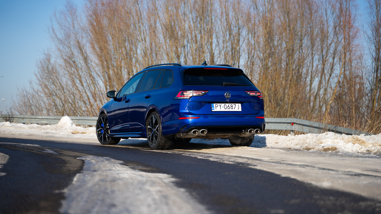 Po zajęciu miejsca za kierownicą Golfa R, jak i na miejscu pasażera, też na pierwszy rzut oka niespecjalnie czuć, że pod maską drzemie naprawdę konkretny potencjał. Wyposażenie i jakość wykończenia wnętrza podobna jak w innych Golfach. Widoczne są oczywiście pewne detale, m.in. logo R na kierownicy, fotelach, ale właśnie: to detale. Spod maski bardziej rasowy dźwięk ujawnia się dopiero przy wyższych obrotach. Jednak już pierwsza wyrwa w jezdni czy bardziej „wredny” próg zwalniający ujawnią dużą twardość zawieszenia, zwłaszcza jeśli Golf R skonfigurowany został z 19-calowymi felgami.
