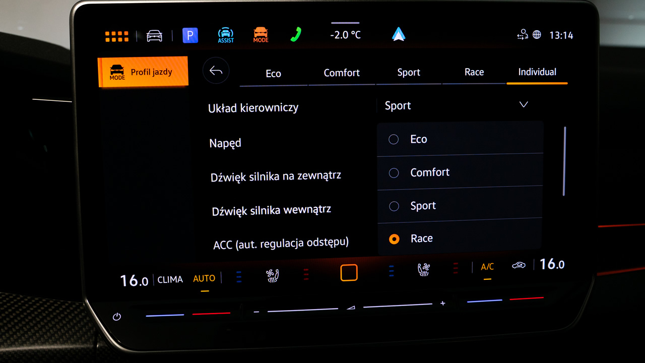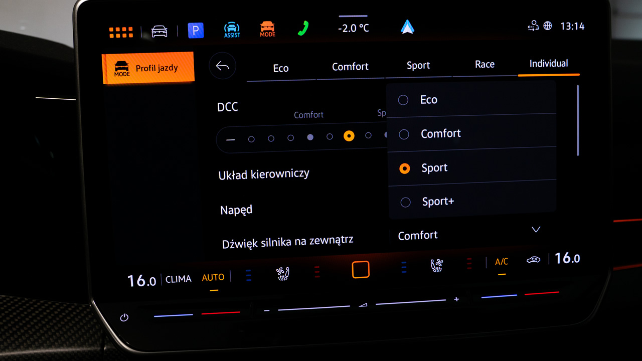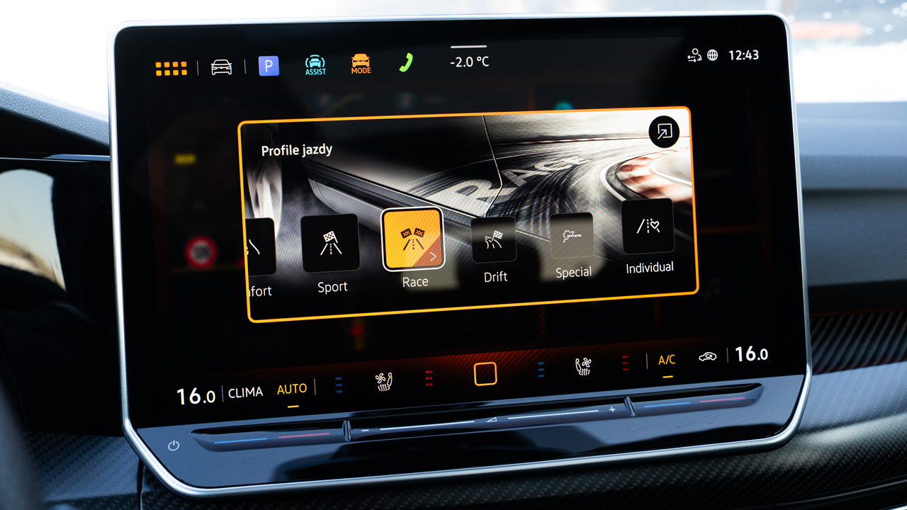 Osobnym tematem jest tryb Drift, w którym systemy starają się dać maksimum wychylenia tyłu, co nie jest może najbardziej skuteczne, ale z całą pewnością efektowne. Na śniegu można się w ten sposób pobawić, na torze w tym trybie osiągniemy gorszy czas przejazdu.