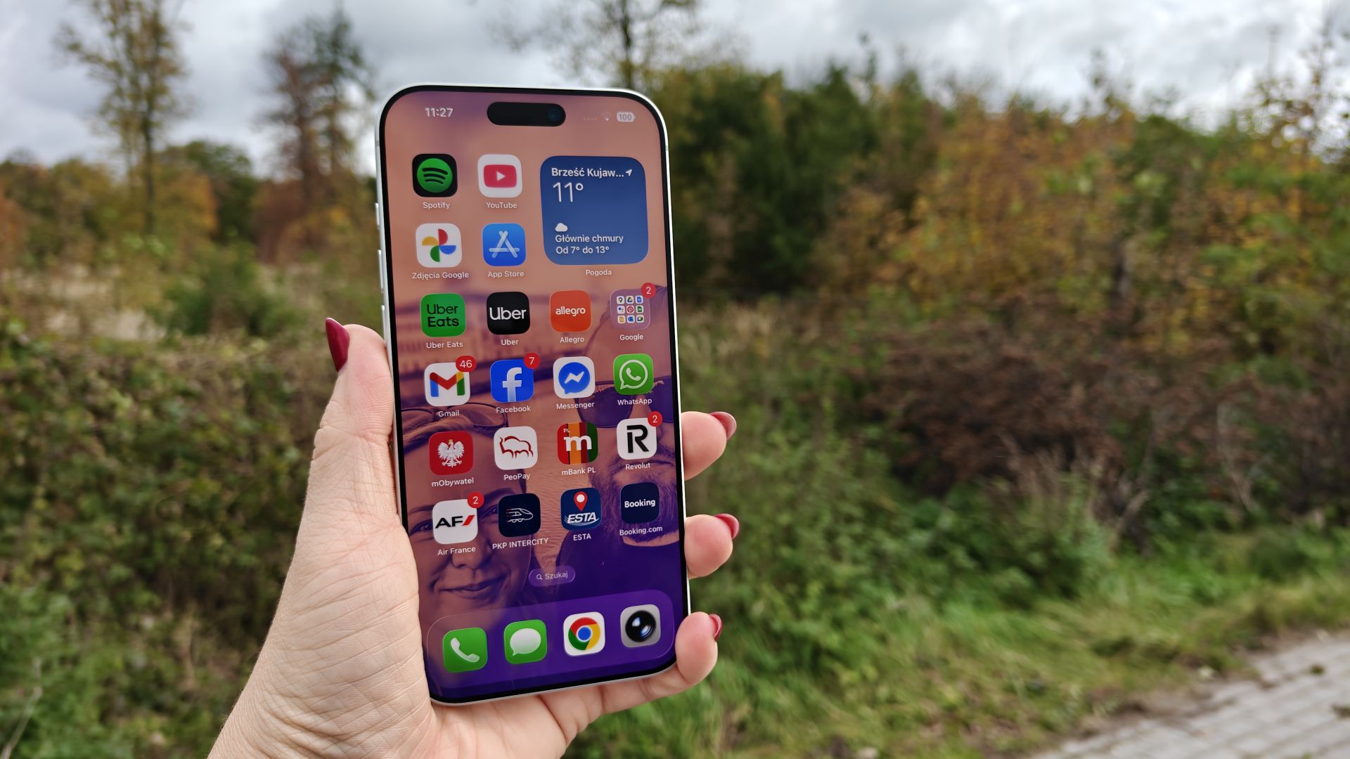 No może mogłoby być nieco lepiej w zakresie jasności, bo chociaż Apple deklaruje 1000 nitów jasności typowej i 1600 maksymalnej (i 3000 nitów szczytowej, ale tej jak wiemy w normalnych warunkach nie uświadczymy), udało mi się zmierzyć maksymalnie 735 nitów w trybie manualnym i 1065 nitów w trybie automatycznym (sprawdzane dla całego ekranu przy oświetleniu żarówką studyjną o mocy 85 W, generującą strumień świetlny 5000 lumenów). Nie są to oczywiście złe wyniki, tyle że iPhone 17 Pro Max nie jest w stanie zbyt długo utrzymać tej drugiej, o czym można się łatwo przekonać podczas słonecznych dni spędzanych na zewnątrz.