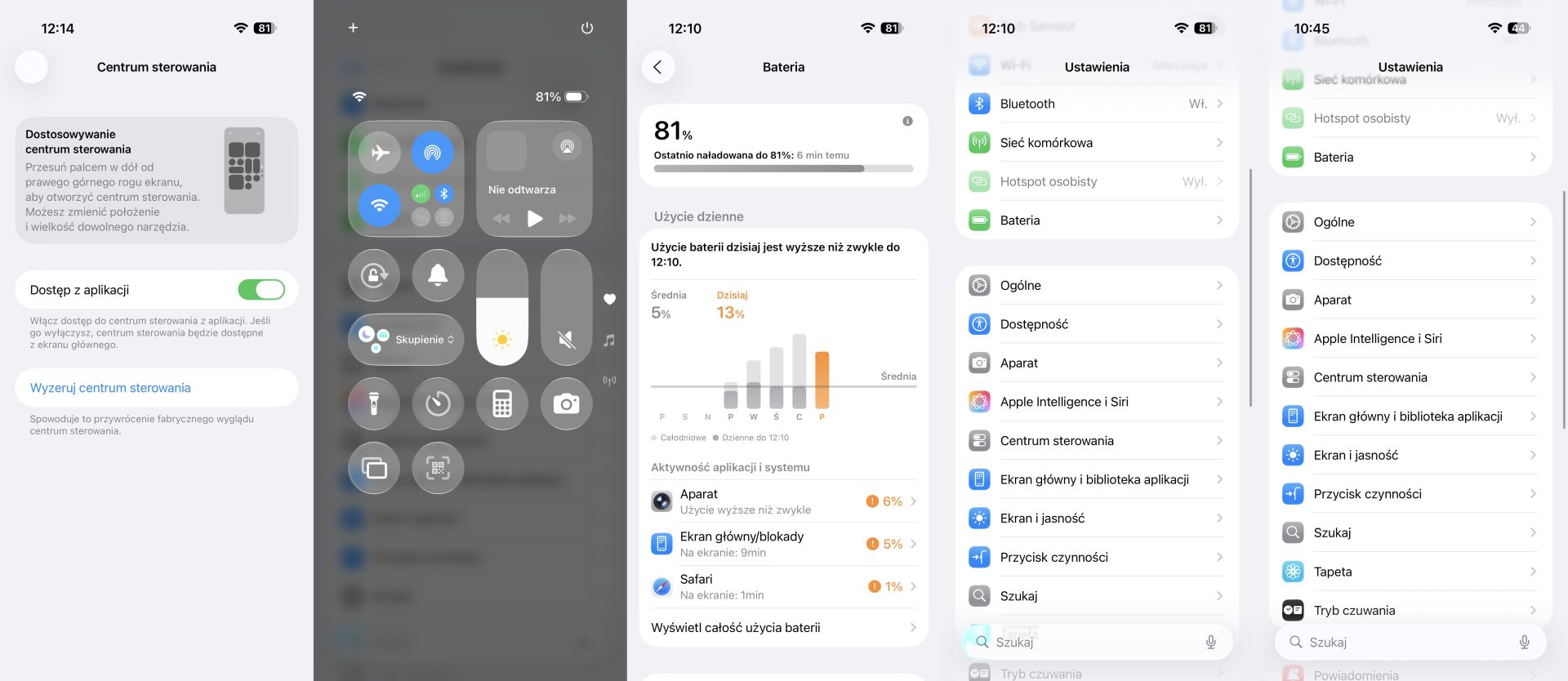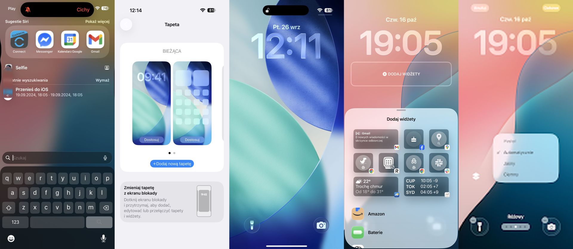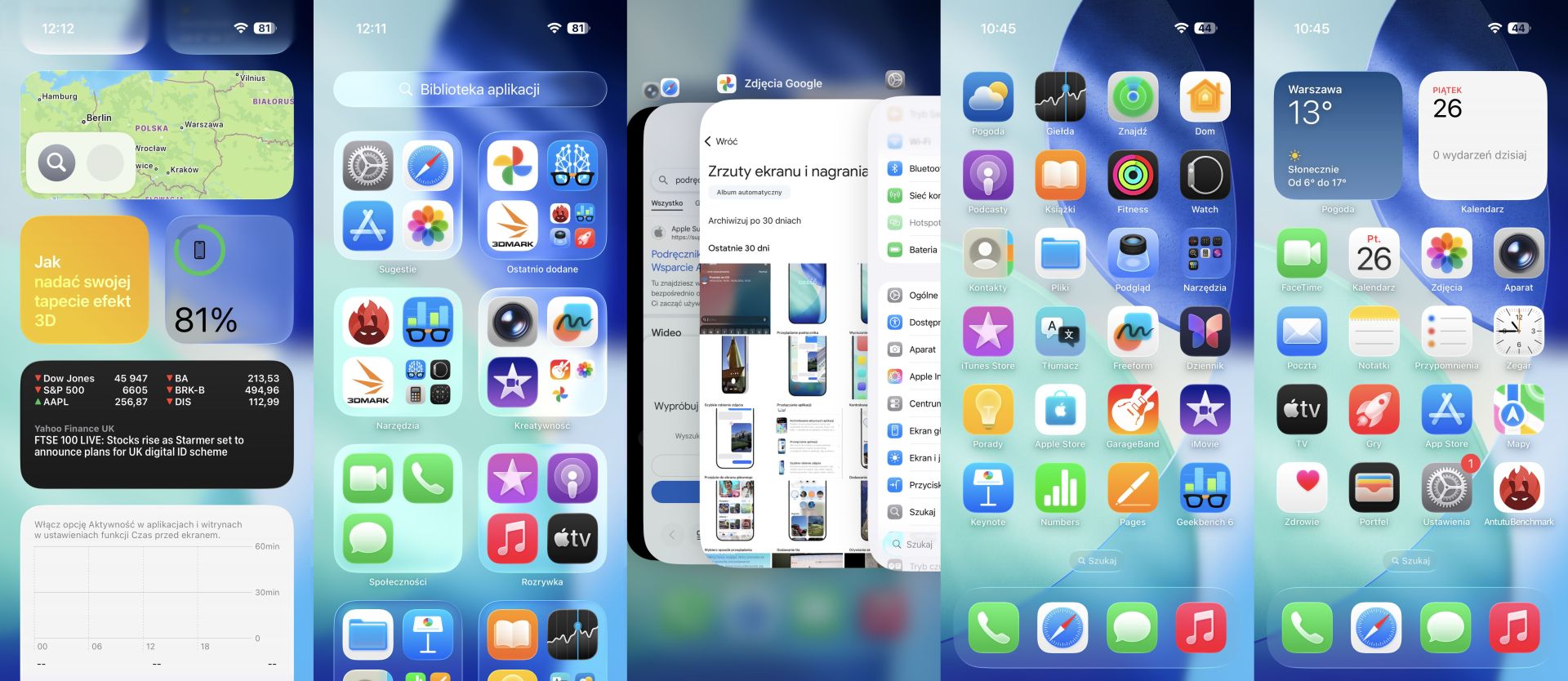 Owszem całość nabrała bardziej harmonijnego charakteru, ale w codziennym użytkowaniu system oferuje dobrze znane doświadczenia. To znaczy wciąż bazuje na ekranach wypełnionych aplikacjami i widżetami (również tymi układanymi w stosy), które możemy wyłączać w razie potrzeby (poza tym z biblioteką aplikacji i Dzisiaj, czyli podsumowaniem dnia) oraz Centrach Powiadomień (lewa strona ekranu) i Sterowania (prawa strona ekranu), gdzie możemy dowolnie układać i dodawać często wykorzystywane narzędzia. Bez zmian jest też w zakresie Dynamicznej Wyspy czy ekranu przełączania aplikacji, gdzie wciąż brakuje opcji jednoczesnego wyłączenia wszystkiego, co działa w tle.